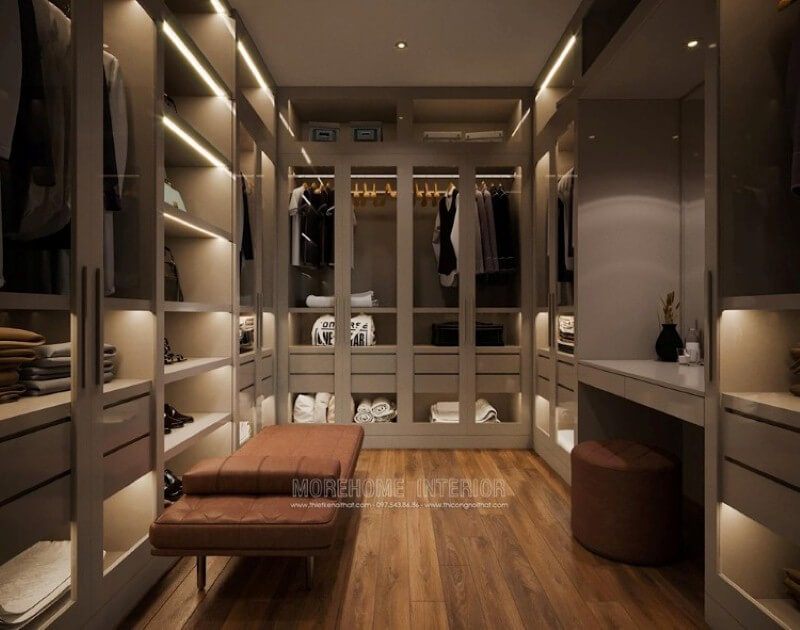Tủ quần áo ấn tượng với cách bố trí đảm bảo mọi công năng nhưng vẫn giữ không gian thông thoáng, gọn gàng.