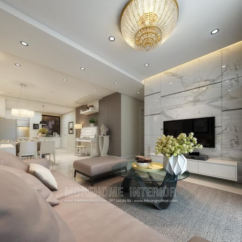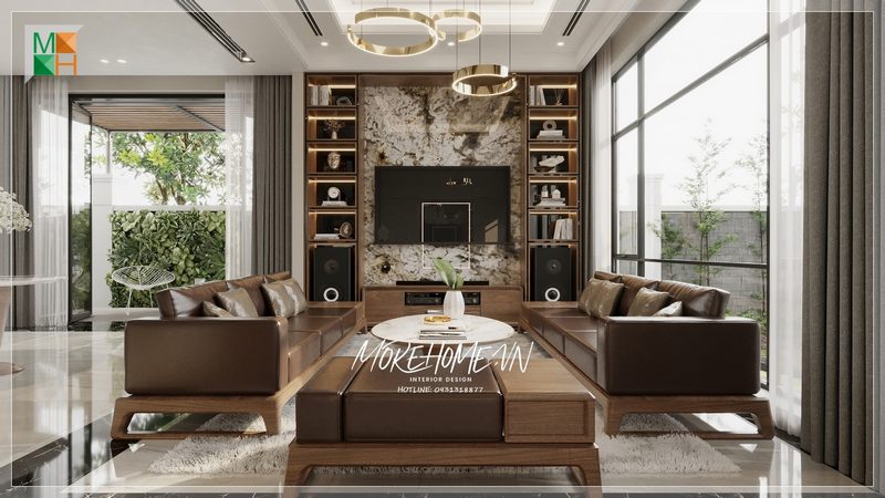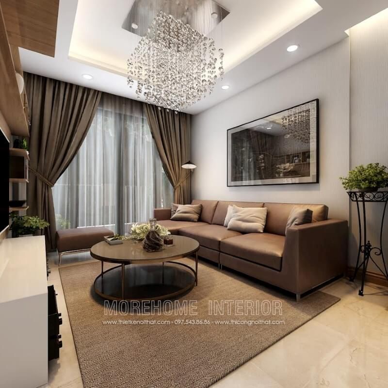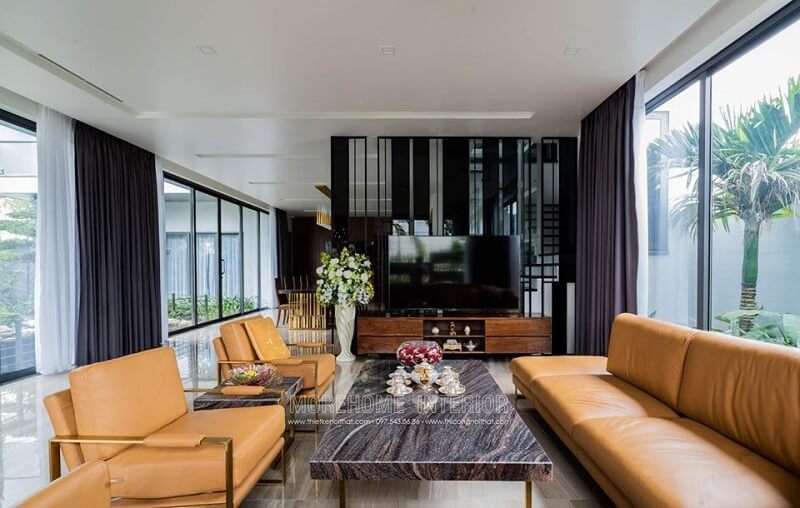 Bàn trà đóng vai trò là điểm nhấn giúp không gian căn phòng trở nên lịch sự thân thiện mỗi khi bước chân vào.