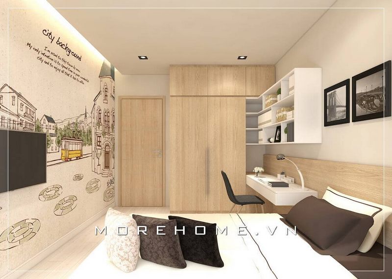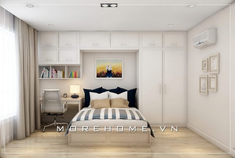 Trang trí nội thất phòng ngủ chung cư ấn tượng với mẫu kệ tủ quần áo kịch trần hiện đại